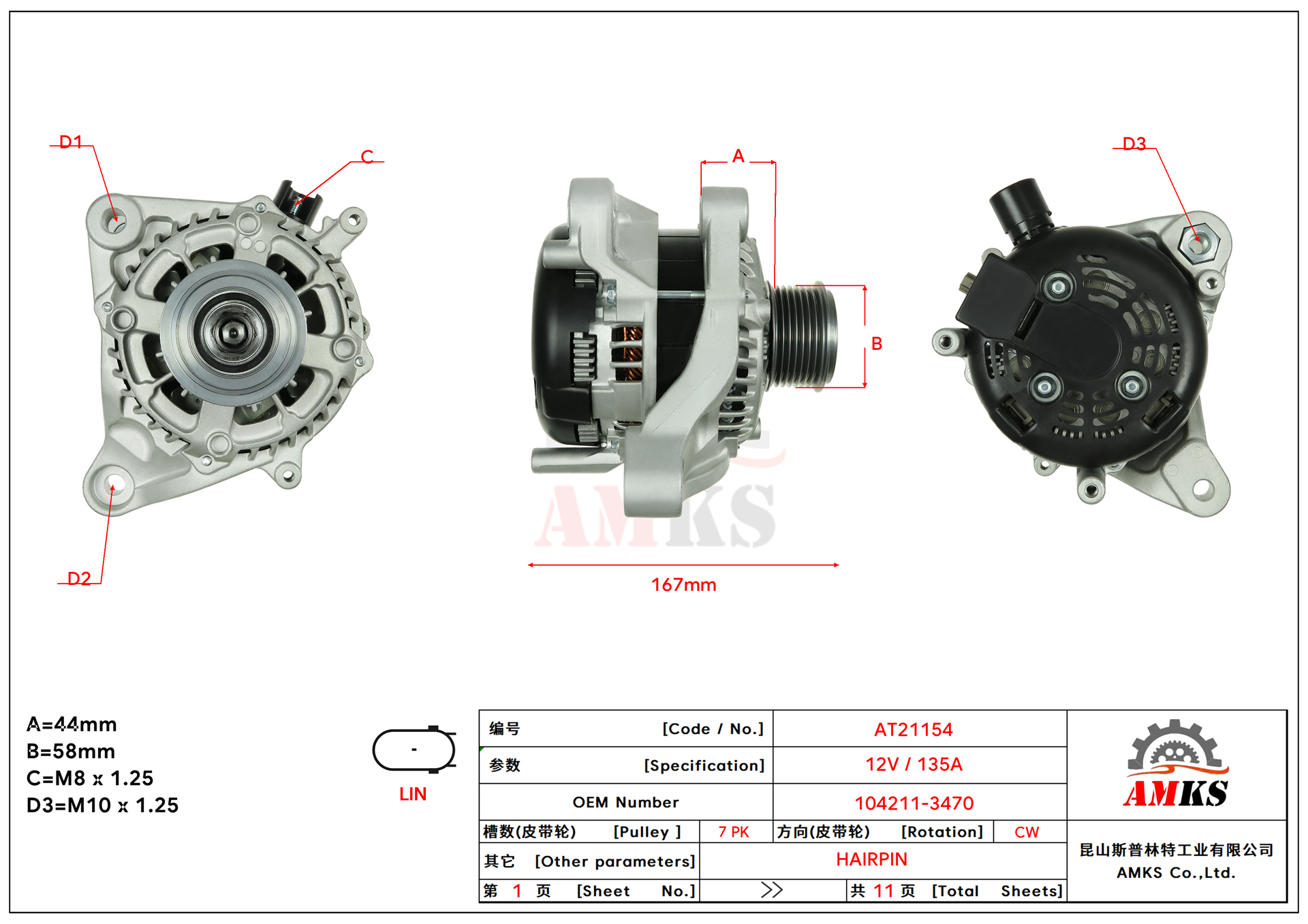 | Specification | 12V / 135A / 7PK / CW / HAIRPIN |